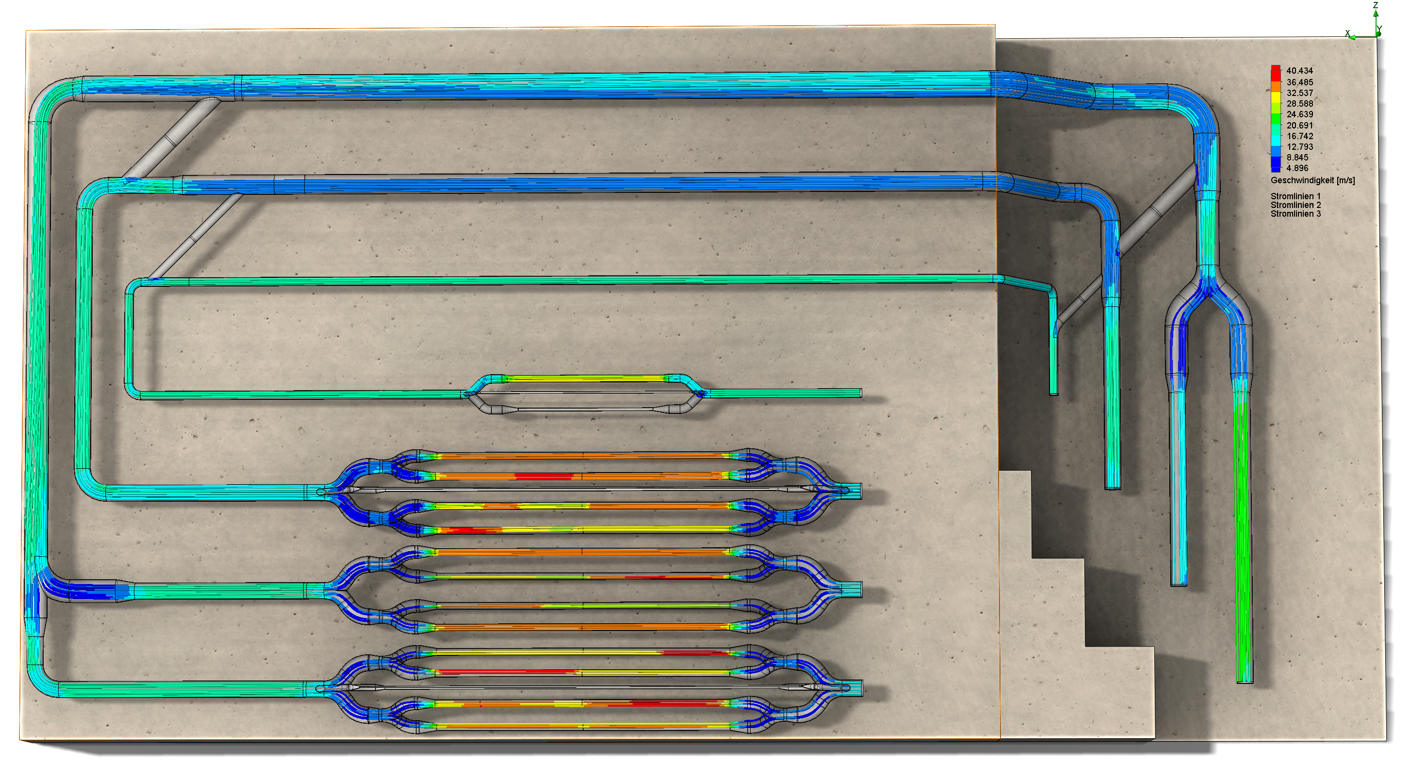 Im Bereich Anlagenbau und -optimierung wird CFD zur Verbesserung der Energieeffizienz und zur Senkung von CO2-Emissionen eingesetzt. Durch die Simulation von Strömungsmaschinen, Rohrleitungsführungen und Formstücken können Druckverluste minimiert und die Effizienz erhöht werden. CFD hilft, die Geometrie von Anlagen so zu optimieren, dass der Energieverbrauch gesenkt und Ressourcen geschont werden. Unternehmen nutzen diese Technologie, um nachhaltige, energieeffiziente Lösungen zu entwickeln, die zu einer deutlichen Reduktion des CO2-Ausstoßes beitragen.